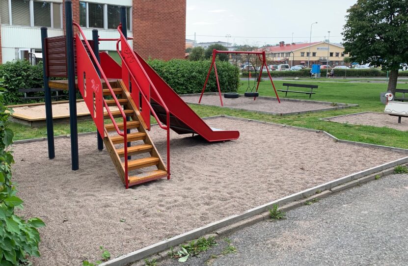 Nu är lekplatsen på Västra Banvägen 14 klar. Nya gungor, ny sittbräda i sandlådan och lekställningen är reparerad och ommålad. Lekplatsen tillhör alla, dvs även de som inte bor i närheten. Alla barn i vårt område är välkomna att vistas där.